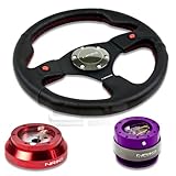 | ✚✚✚ NRG-SRK-140H-RD+007R+200PP, NRG Innovations 12.5" 320mm Black Leather Red Stitch Dual Horn Button Racing Steering Wheel Combo with 6 Hole Short Hub Adapter with Gen 2.0 Purple Quick Release Kit SRK-140H NRG Quick Release features many options that conventional ball-locking quick release system do not. It is specially engineered with raised sections to prevent the scratching and stretching of the hub while a self locking feature adds increased safety and functionality. Features racing styled for added style and look. Each unit is made from the highest quality aircraft grade aluminum and is anodized for maximum durability and finish.